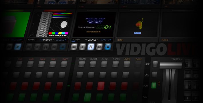 Vidigo Live è una soluzione software intuitiva pr la produzione televisiva multi-camera live. Include uno switcher video, mixer audio, lettori video e un motore grafico che supporta in tempo reale la grafica di Adobe Flash. Vidigo Lite ha un interfaccia molto facile da imparare e da usare, ed è anche lo strumento per la produzione sul posto, è piccolo ma è potente e si inserisce in un flight case singolo.